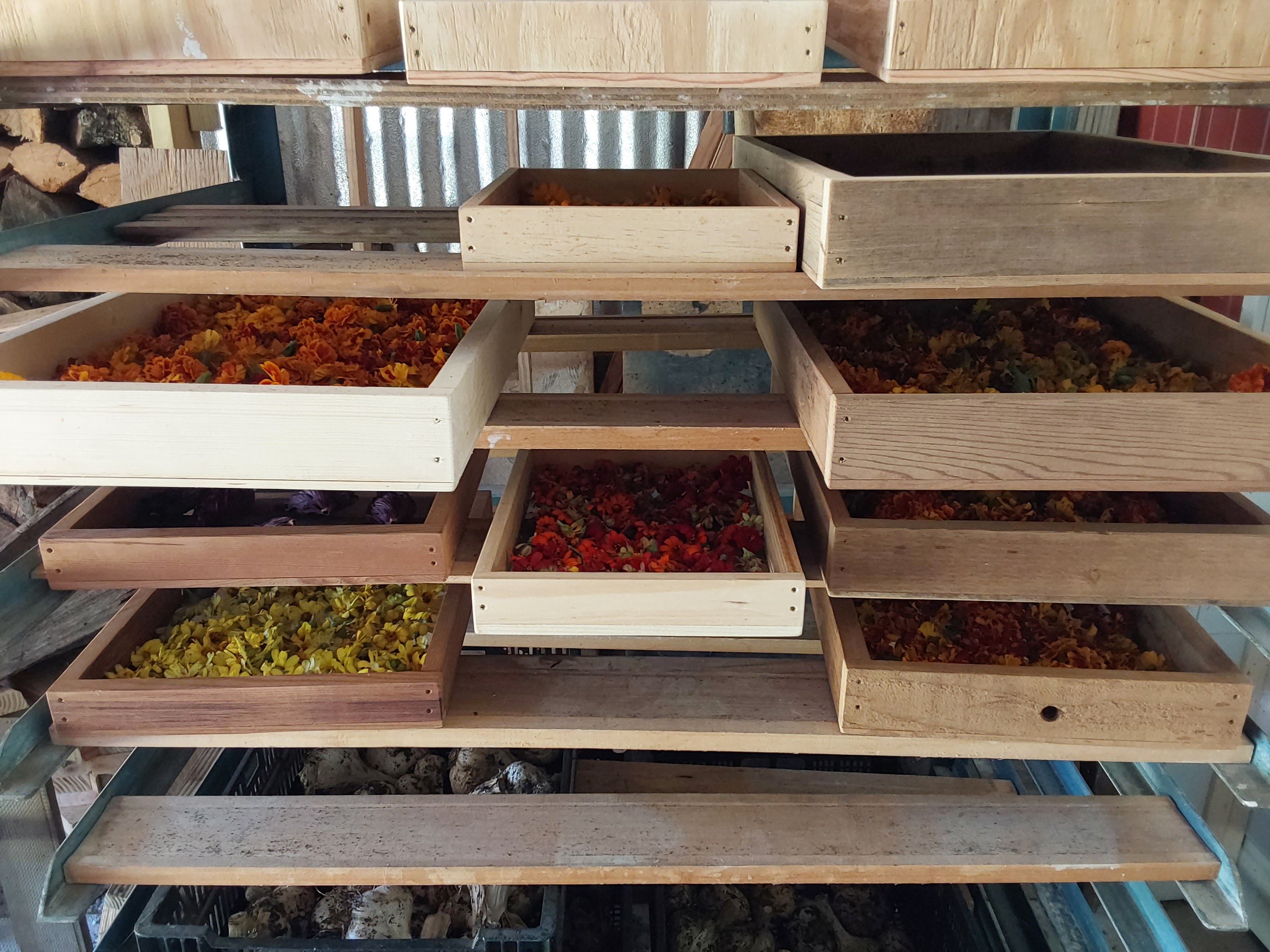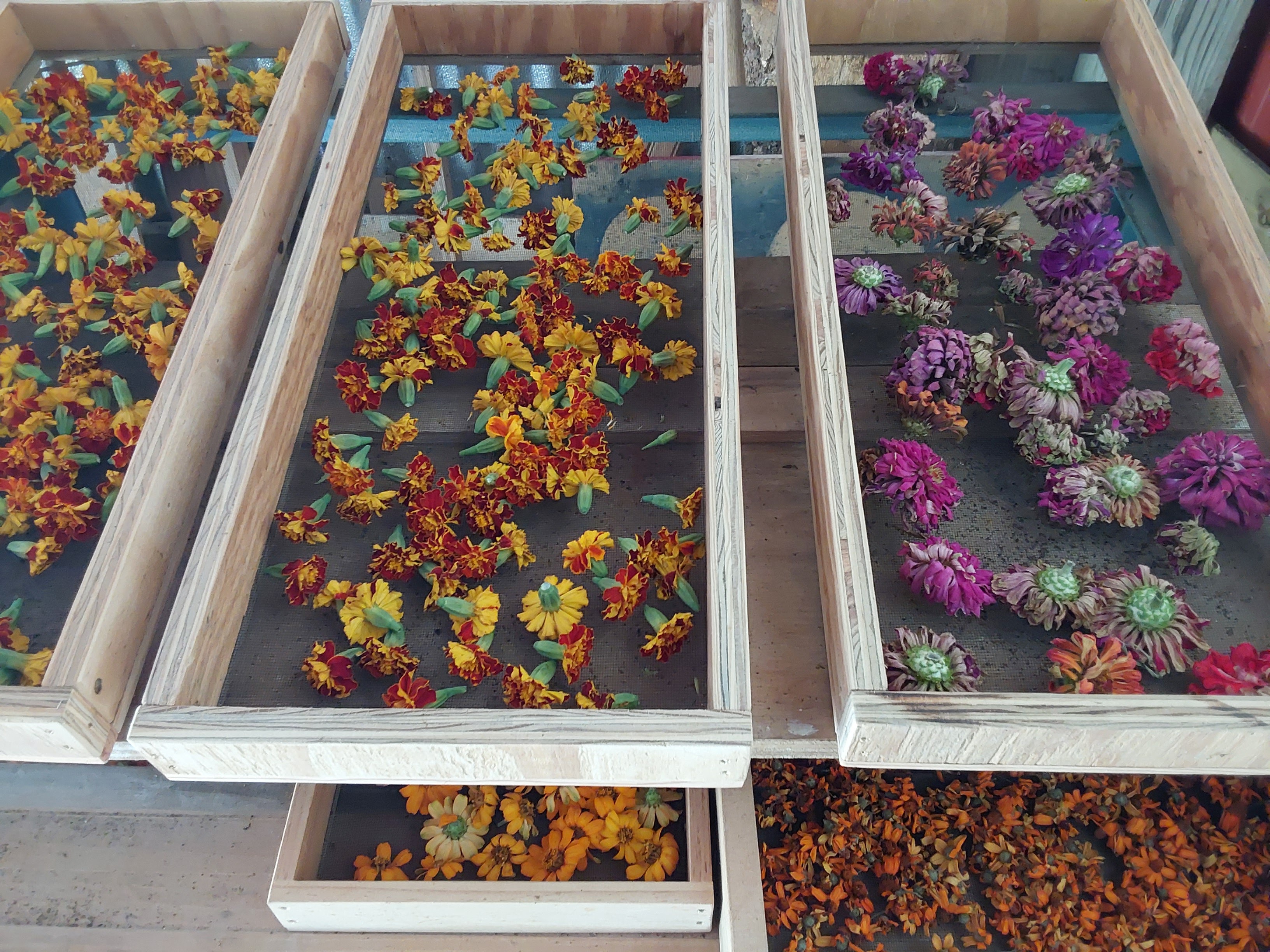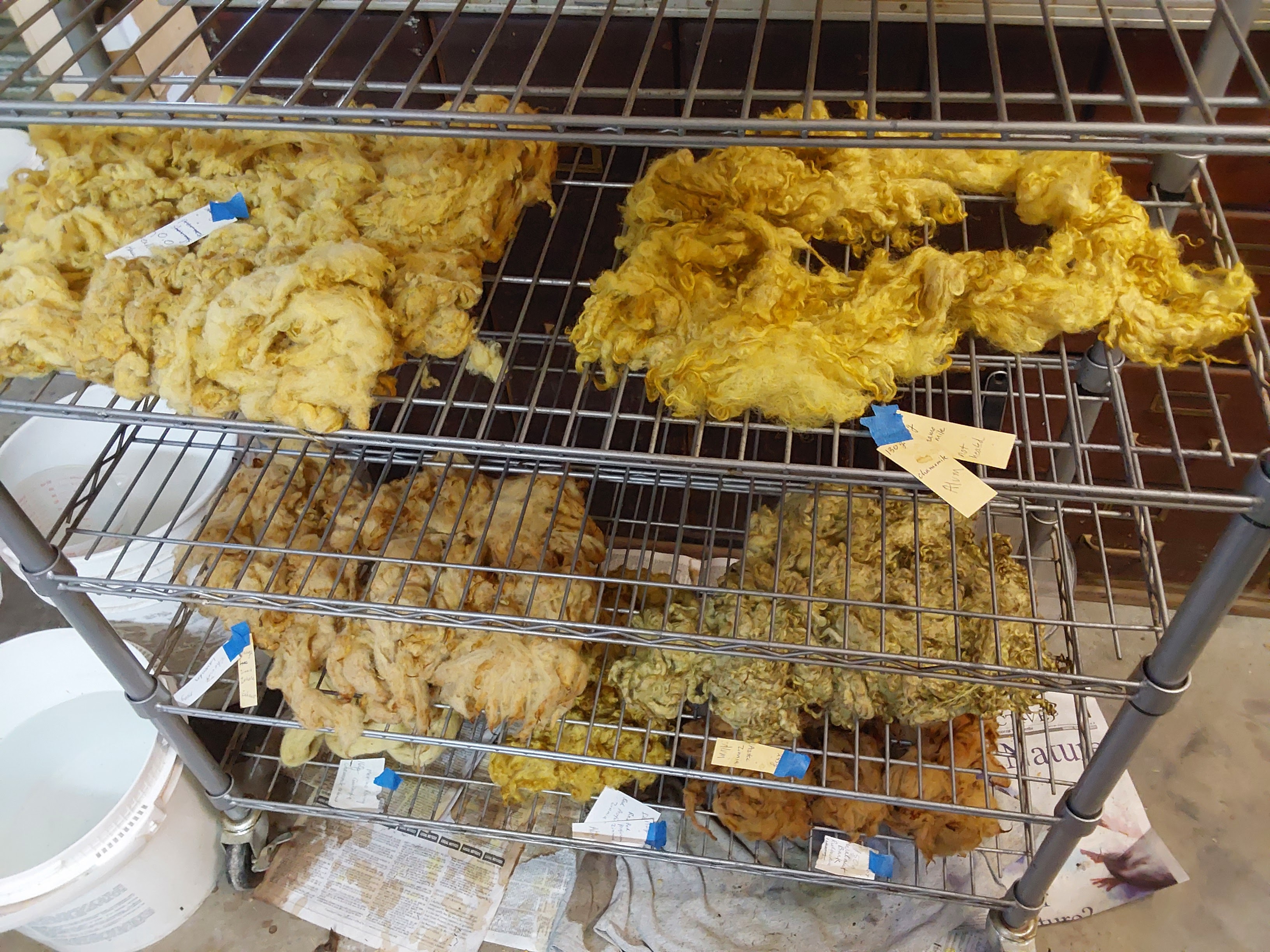 I used to compost the zinnias, let the hibiscus flowers drop and ignore the elderberry. Indigo? After a lifetime in horticulture, I was unaware of its magic. Now, the vegetable garden is more madder than ‘maters, more indigo than herbs, more zinnias than zucchini. Drying screens, fleece and bags of dye materials occupy more space than I ever dreamed possible. Each December, part of the wood shop transforms to kitchen with a rollaway sink, water heating on the woodstove and racks of colored fleece.